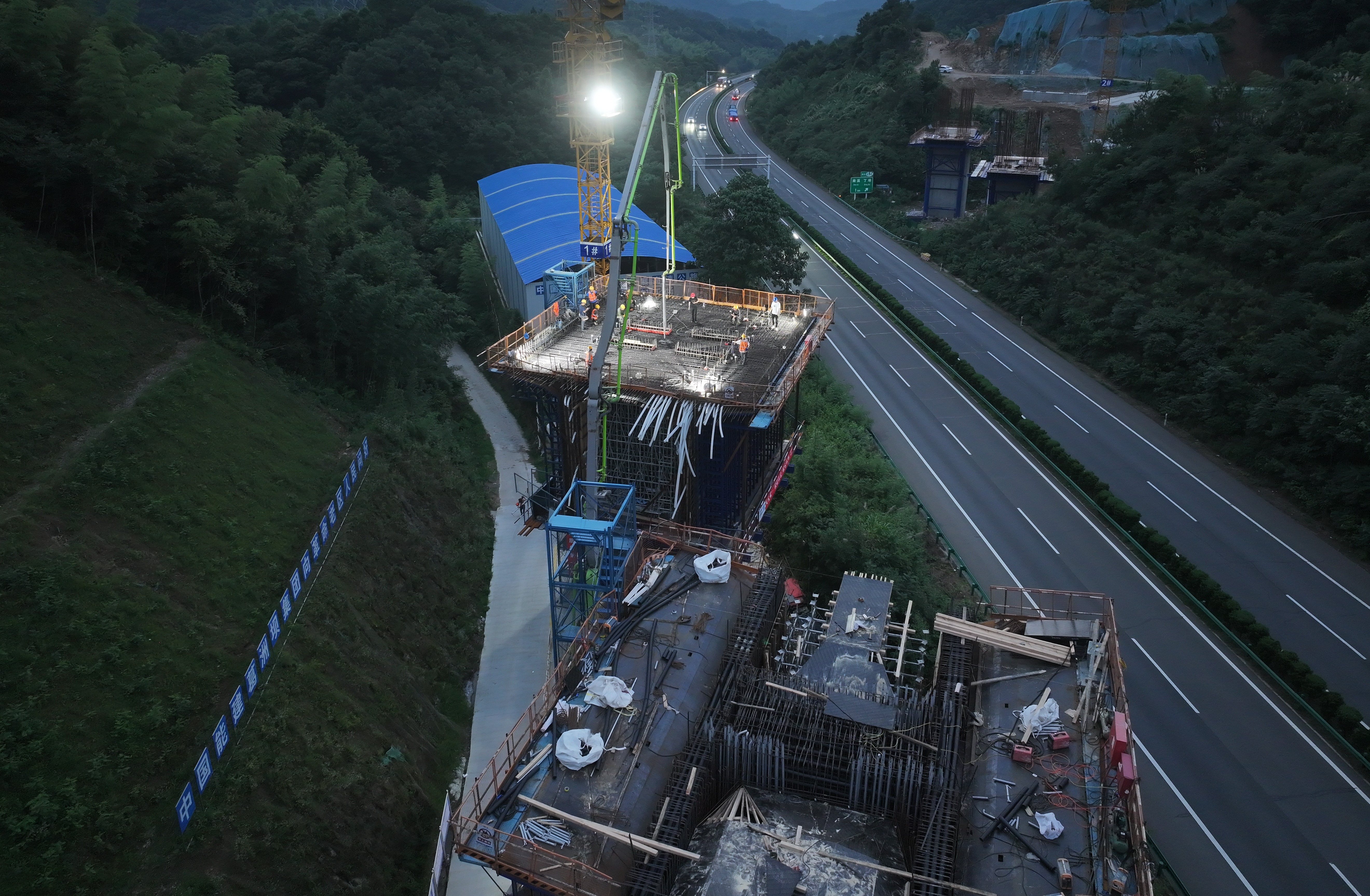 辰時的和襄高速,宛如沸騰的戰場。在橋梁工地,架橋機巍然矗立,將沉重的預制梁精準吊裝到位;焊花飛濺,焊工們專注地將鋼筋骨架牢牢焊接,筑牢根基。在隧道掌子面處,濕噴機器發出有節奏的轟鳴,操作人員正在將調配好的混凝土均勻噴涂到剛開挖巖面上,熟練地為隧道披上堅固“鎧甲”。而在道路上,瀝青攤鋪機緩緩前行,傾瀉下滾燙的瀝青混合料,壓路機緊隨其后,將路面壓實平整。整個現場熱火朝天,力量與速度在此交響,希望與夢想在此綻放。